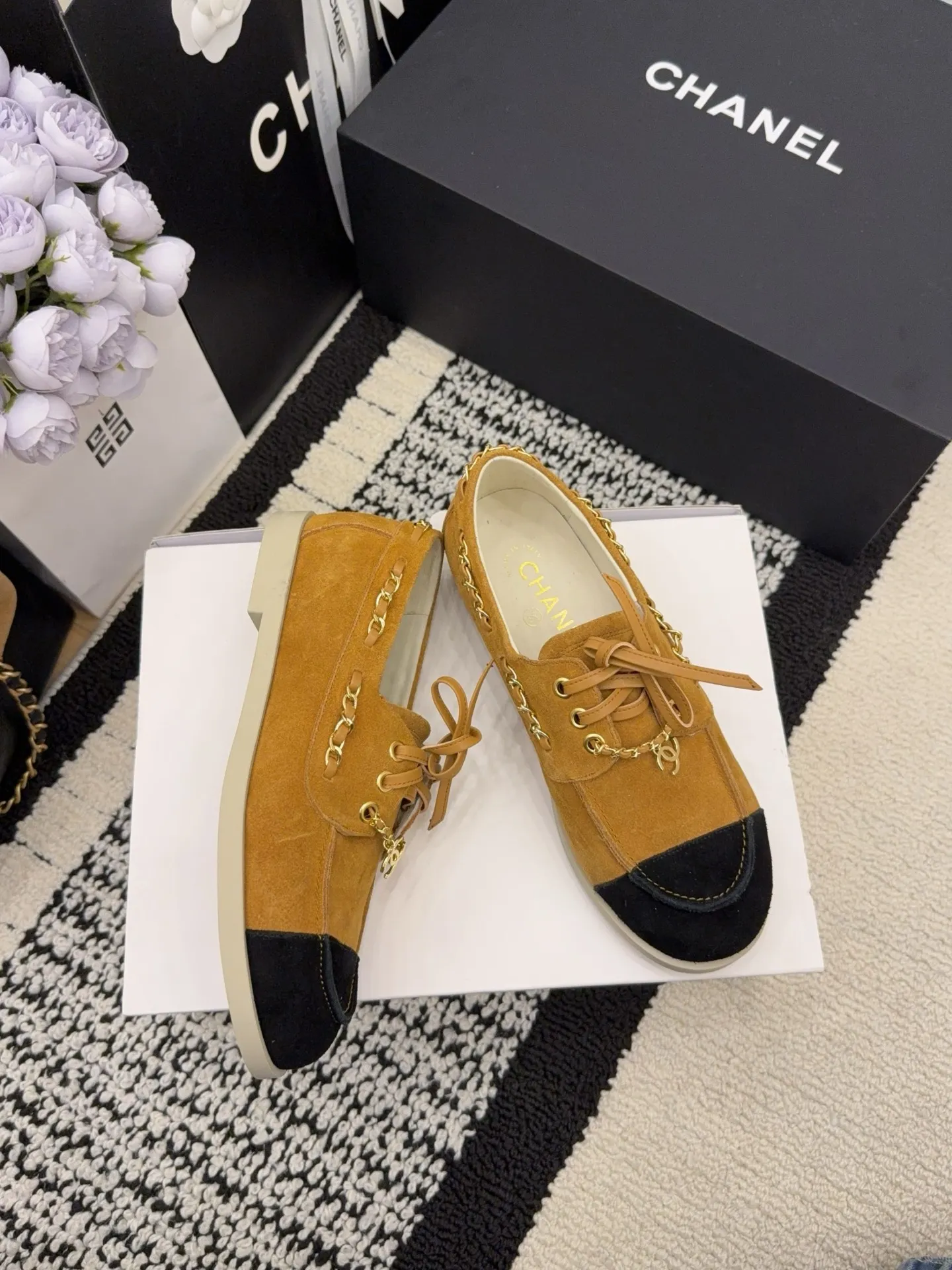 Wholeale cheap replica Chanel Flat Shoes For Women #1400625 prices $102.00 USD online, outlet Gender WomenSize US 5=EUR(35), US 5.5=EUR(36), US 6=EUR(37), US 7=EUR(38), US 8=EUR(39)! Wholesale new arrivals cheap fake Chanel Flat Shoes enjoy free shipping and 66%-OFF with best quality! The hot on sale style Chanel Flat Shoes For Women #1400625.