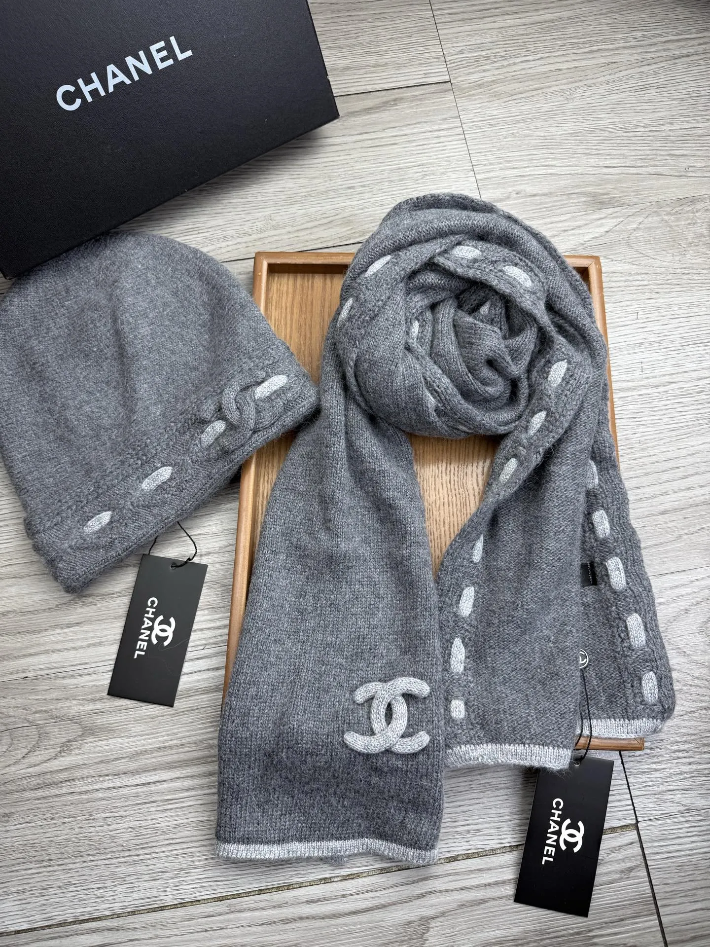 Wholeale cheap replica Chanel Hat and Scarf Set #1397239 prices $60.00 USD online, outlet ! Wholesale new arrivals cheap fake Chanel Hat and Scarf and Glove Set enjoy free shipping and 66%-OFF with best quality! The hot on sale style Chanel Hat and Scarf Set #1397239.
