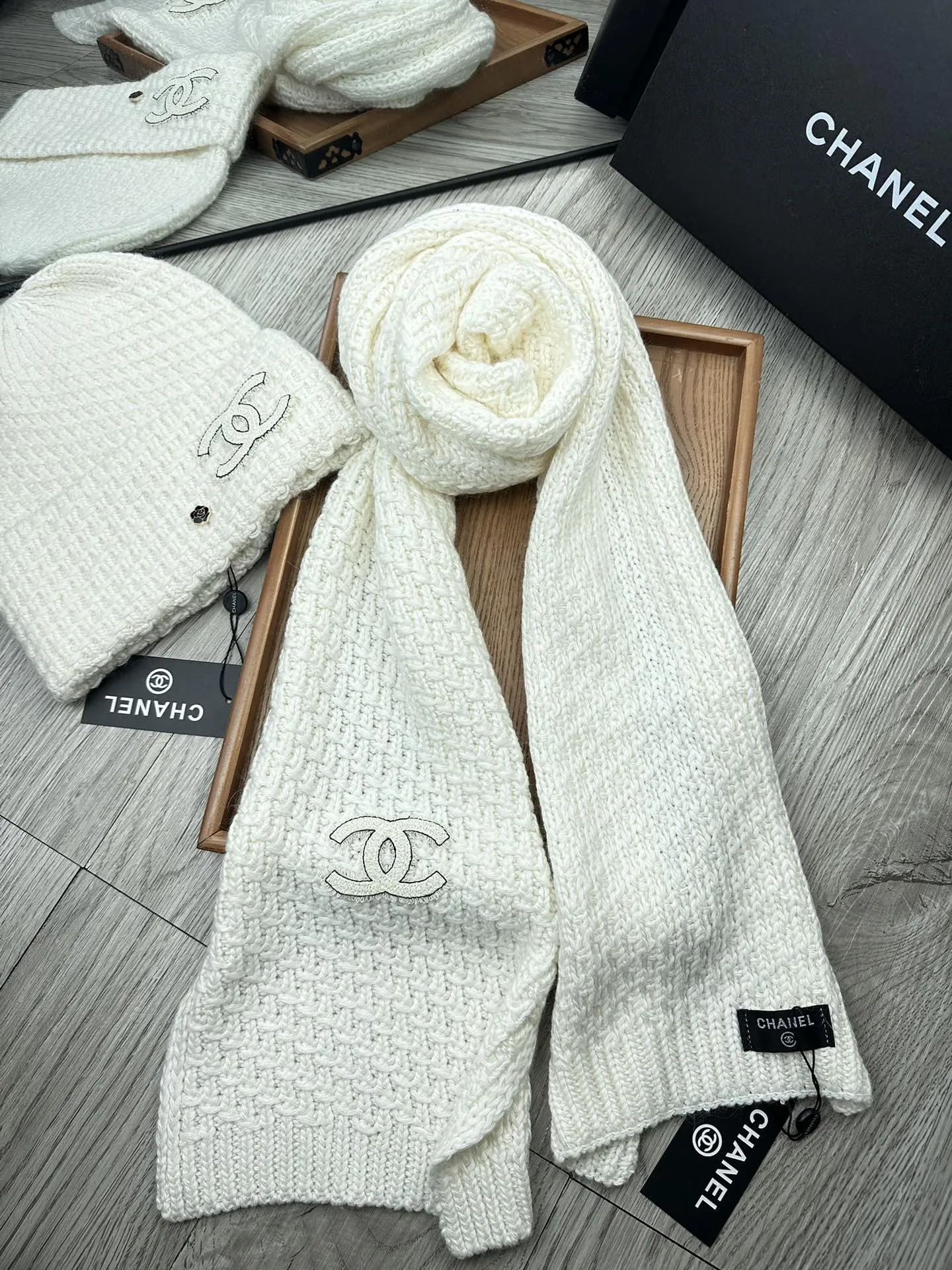 Wholeale cheap replica Chanel Hat and Scarf Set #1401274 prices $52.00 USD online, outlet ! Wholesale new arrivals cheap fake Chanel Hat and Scarf and Glove Set enjoy free shipping and 66%-OFF with best quality! The hot on sale style Chanel Hat and Scarf Set #1401274.