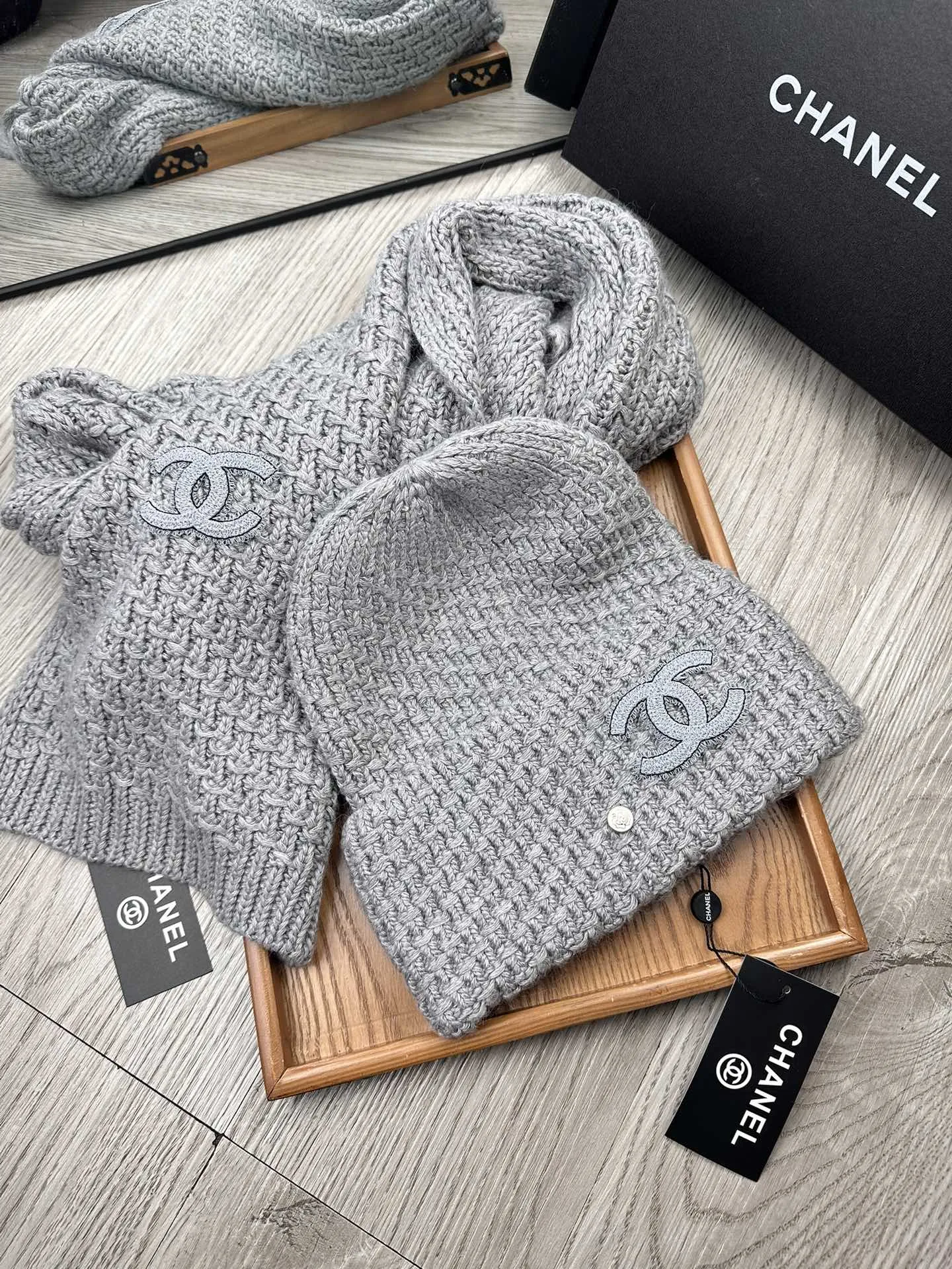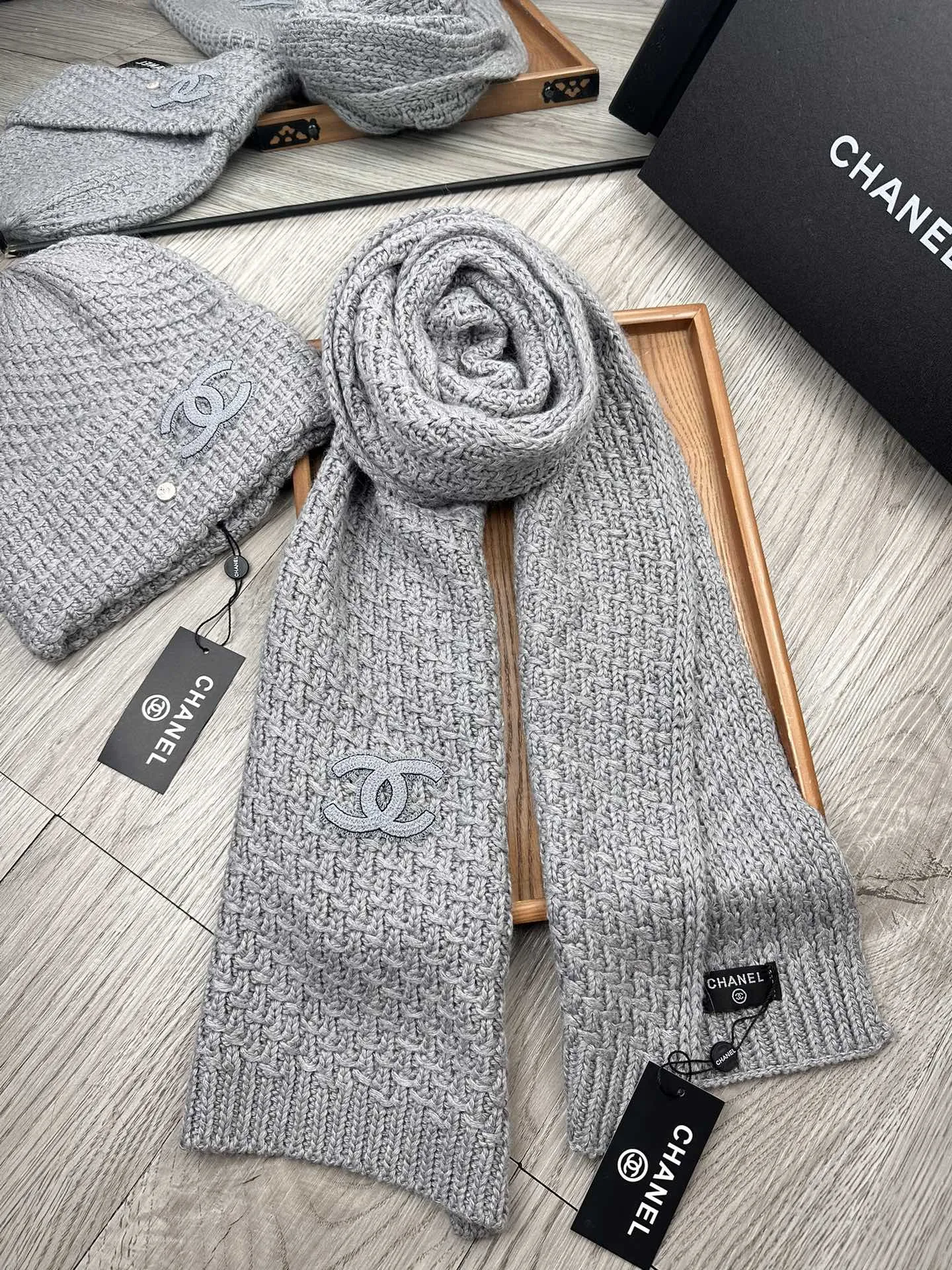 Wholeale cheap replica Chanel Hat and Scarf Set #1401277 prices $52.00 USD online, outlet ! Wholesale new arrivals cheap fake Chanel Hat and Scarf and Glove Set enjoy free shipping and 66%-OFF with best quality! The hot on sale style Chanel Hat and Scarf Set #1401277.