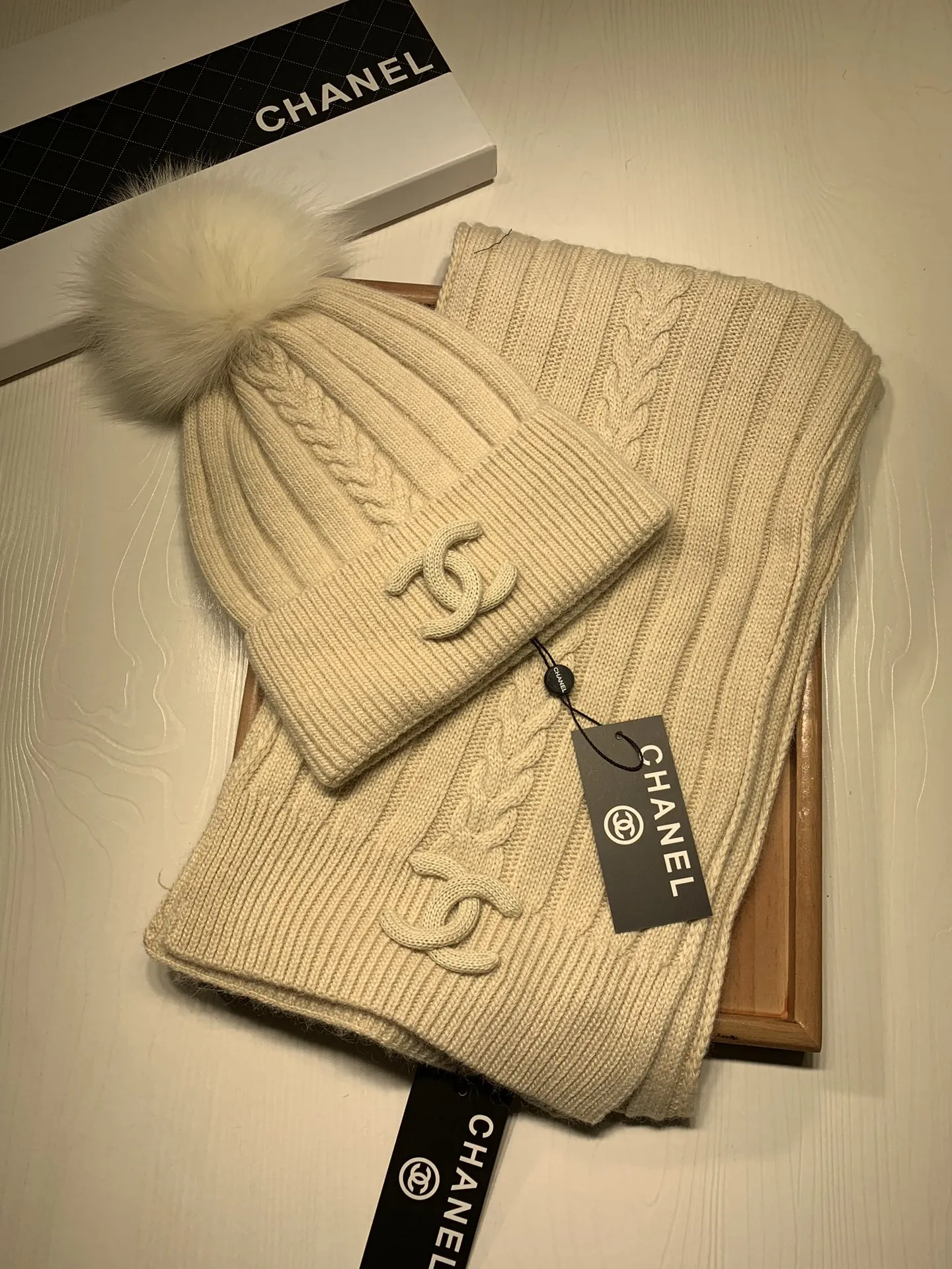 Wholeale cheap replica Chanel Hat and Scarf Set #1407456 prices $64.00 USD online, outlet ! Wholesale new arrivals cheap fake Chanel Hat and Scarf and Glove Set enjoy free shipping and 66%-OFF with best quality! The hot on sale style Chanel Hat and Scarf Set #1407456.