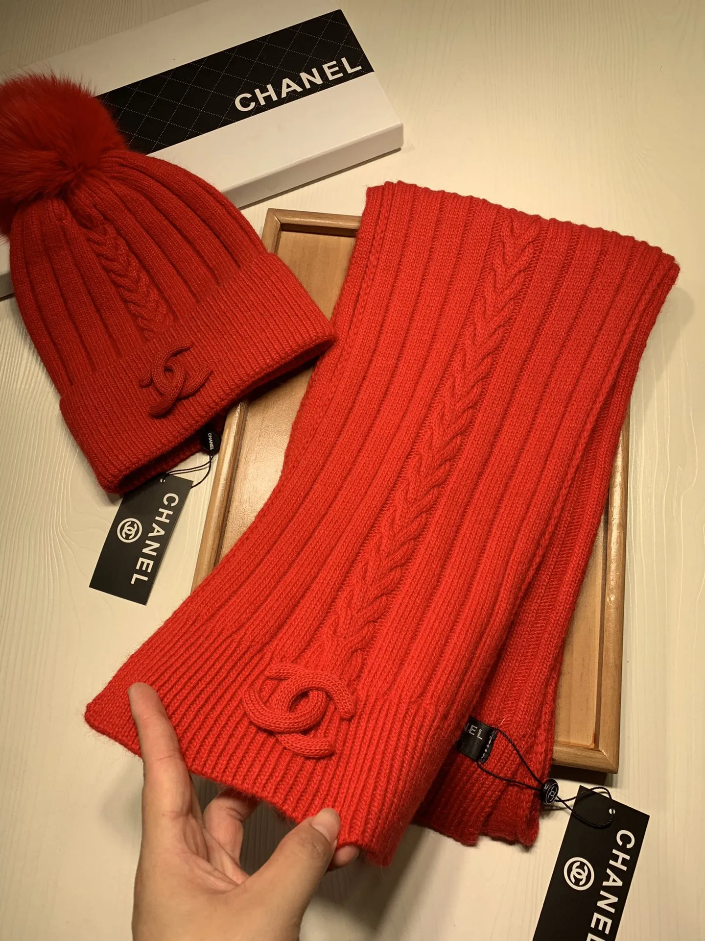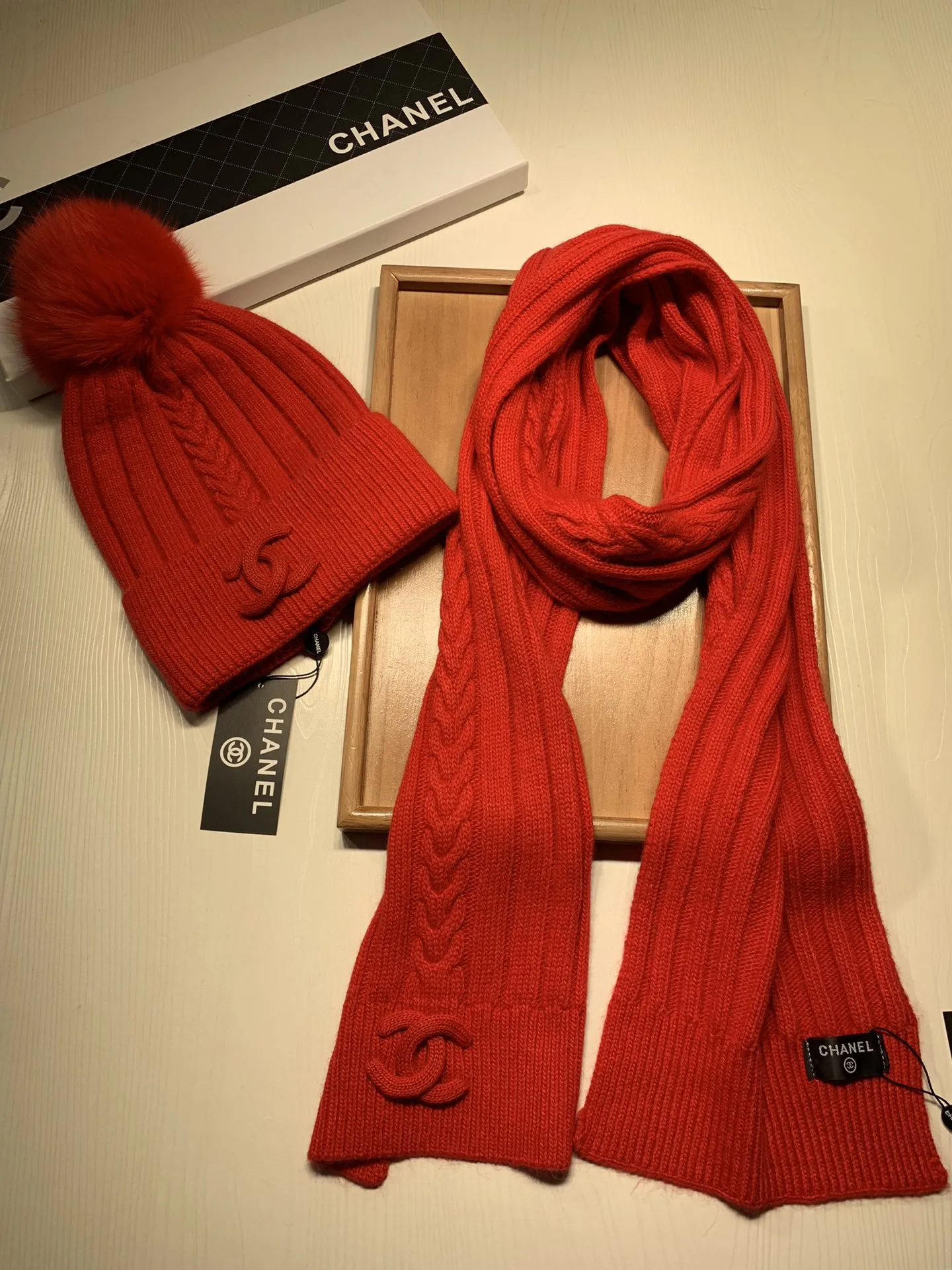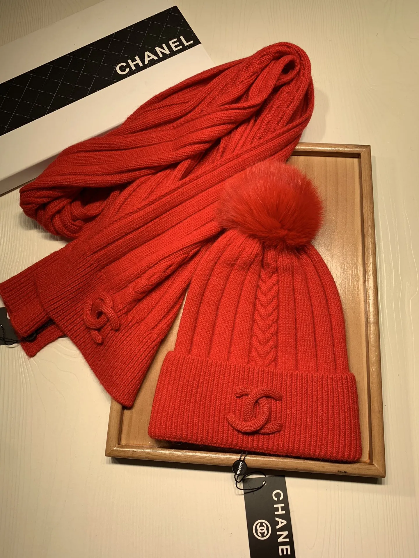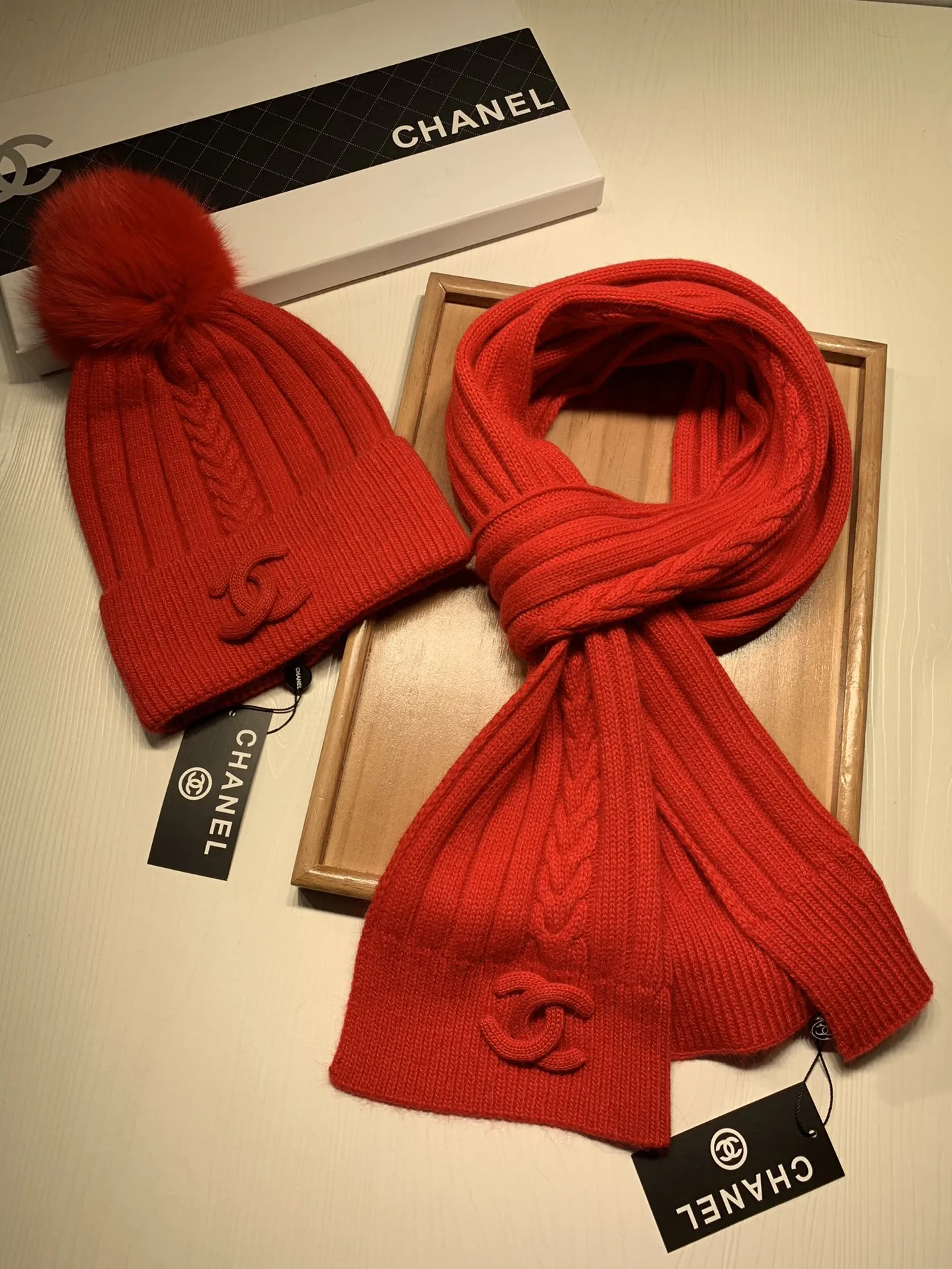 Wholeale cheap replica Chanel Hat and Scarf Set #1407457 prices $64.00 USD online, outlet ! Wholesale new arrivals cheap fake Chanel Hat and Scarf and Glove Set enjoy free shipping and 66%-OFF with best quality! The hot on sale style Chanel Hat and Scarf Set #1407457.
