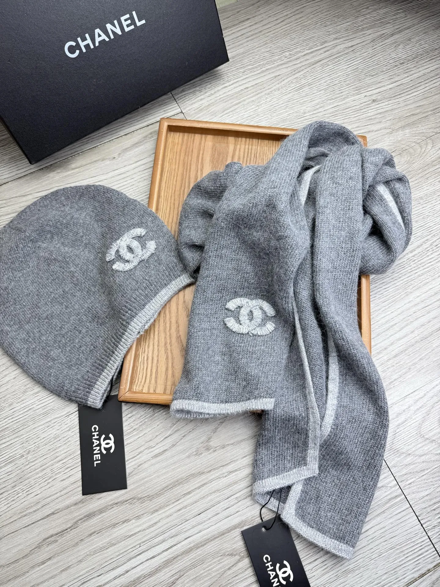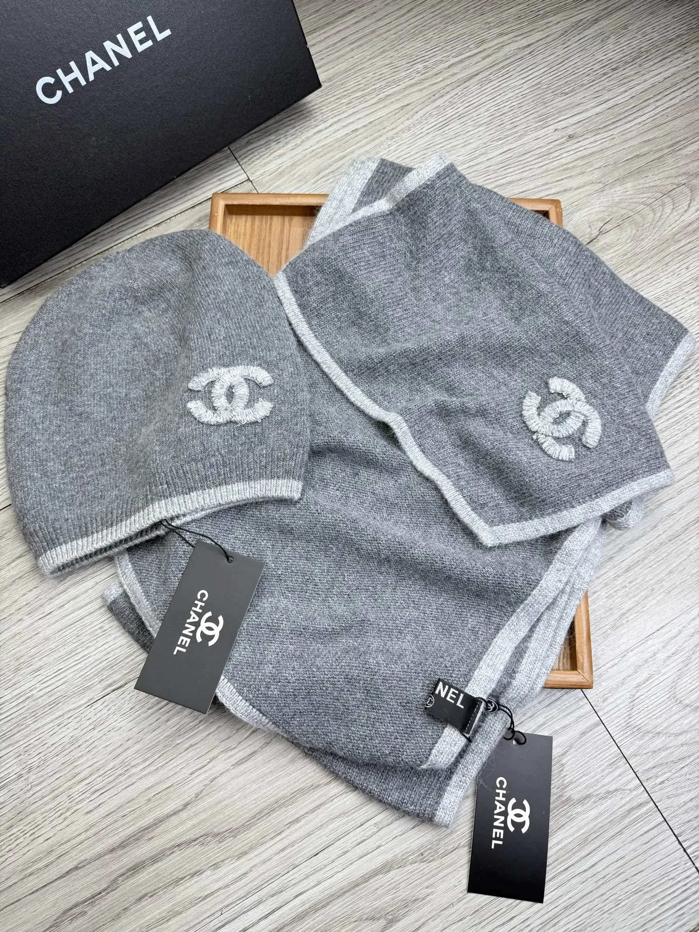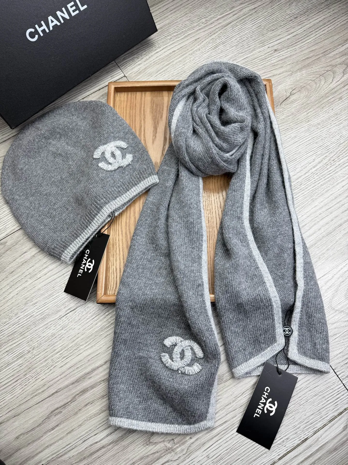 Wholeale cheap replica Chanel Hat and Scarf Set #1407480 prices $52.00 USD online, outlet ! Wholesale new arrivals cheap fake Chanel Hat and Scarf and Glove Set enjoy free shipping and 66%-OFF with best quality! The hot on sale style Chanel Hat and Scarf Set #1407480.