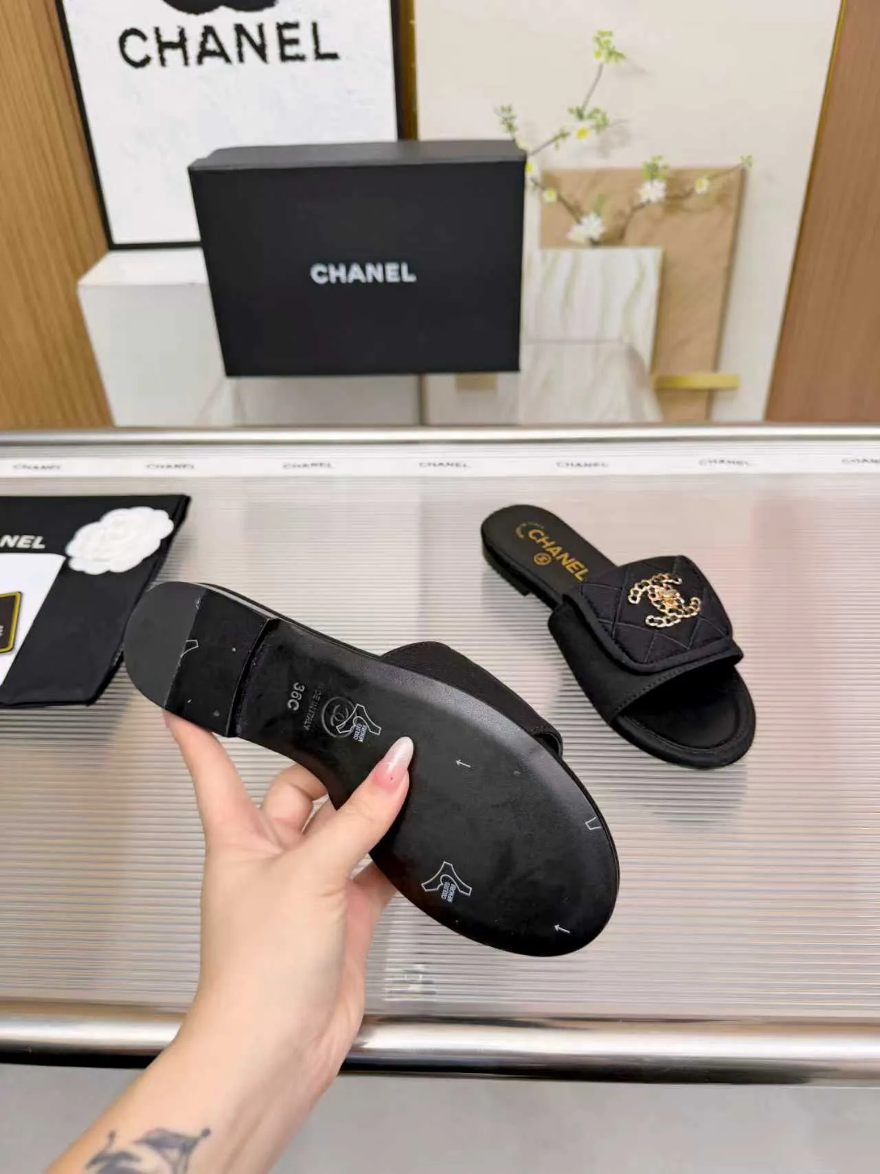 The best wholesale store offer cheap replica Chanel Slippers items Gender WomenSize US 5=EUR(35), US 5.5=EUR(36), US 6=EUR(37), US 7=EUR(38), US 8=EUR(39), US 8.5=EUR(40) online!!