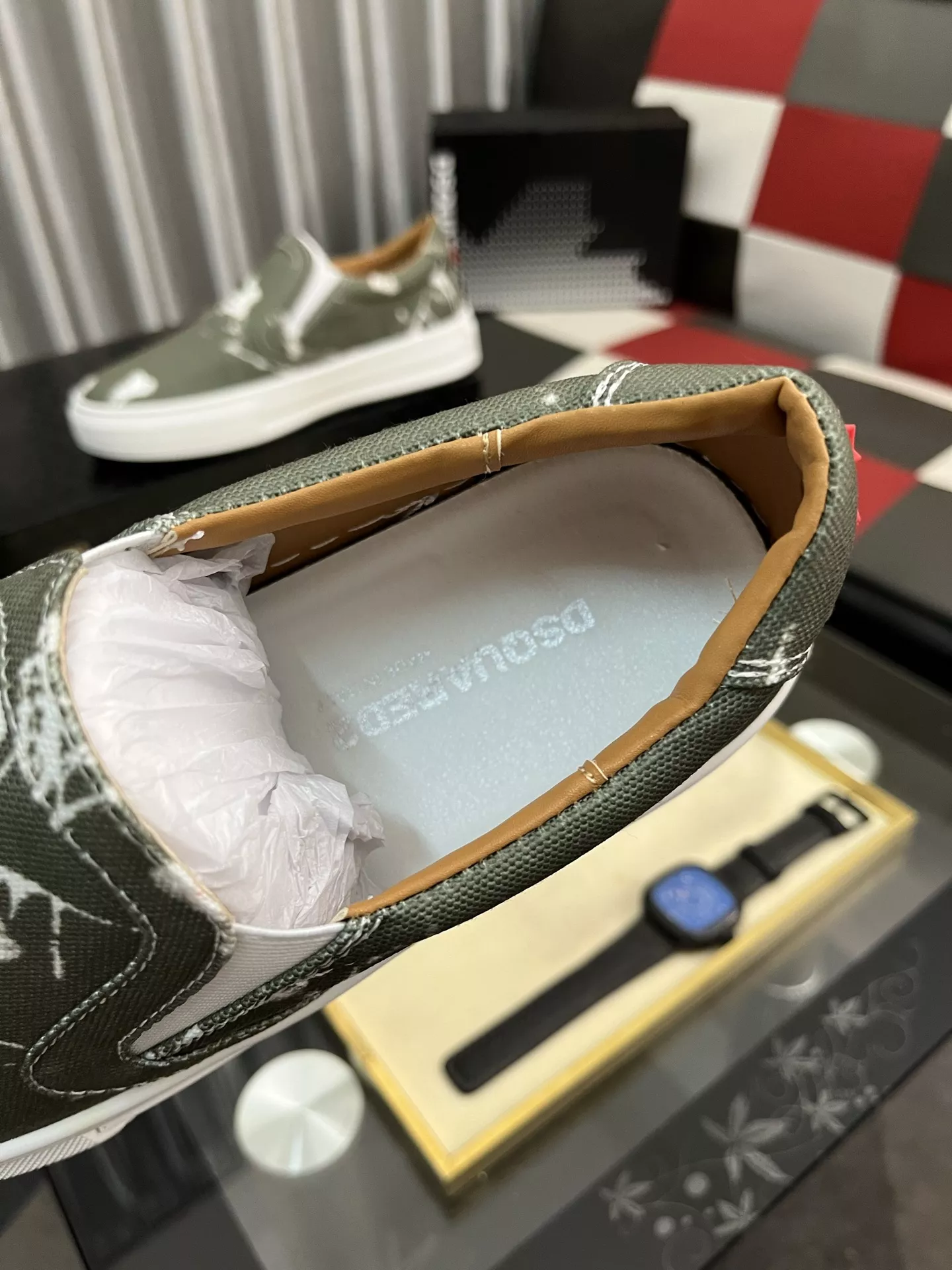 Wholeale cheap replica Dsquared Casual Shoes For Men #1381011 prices $80.00 USD online, outlet Gender MenSize US 4=EUR(38), US 5=EUR(39), US 6=EUR(40), US 7=EUR(41), US 8=EUR(42), US 9=EUR(43), US 10=EUR(44)! Wholesale new arrivals cheap fake Dsquared Casual Shoes enjoy free shipping and 66%-OFF with best quality! The hot on sale style Dsquared Casual Shoes For Men #1381011.