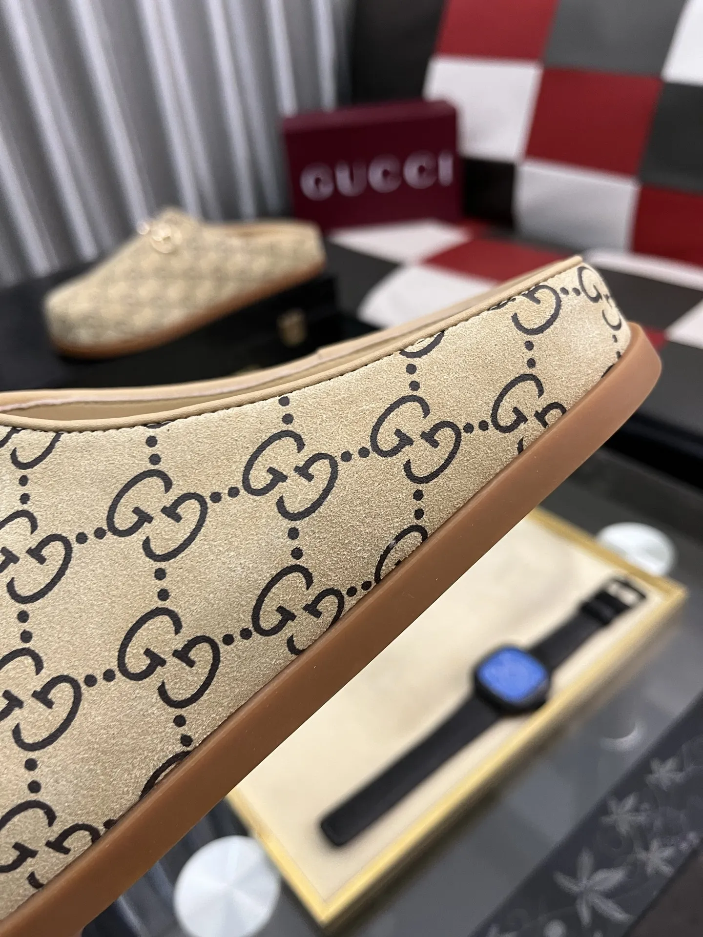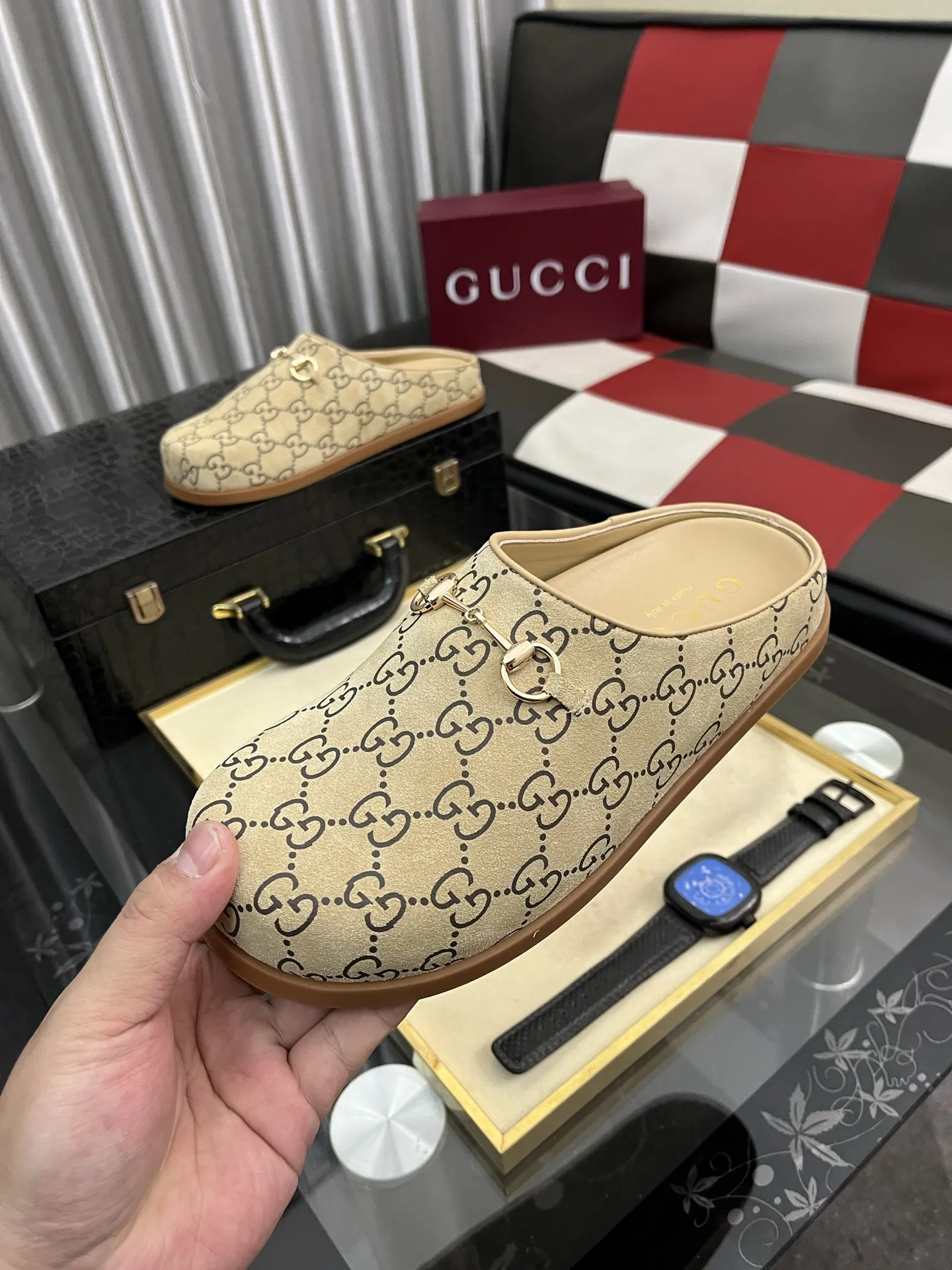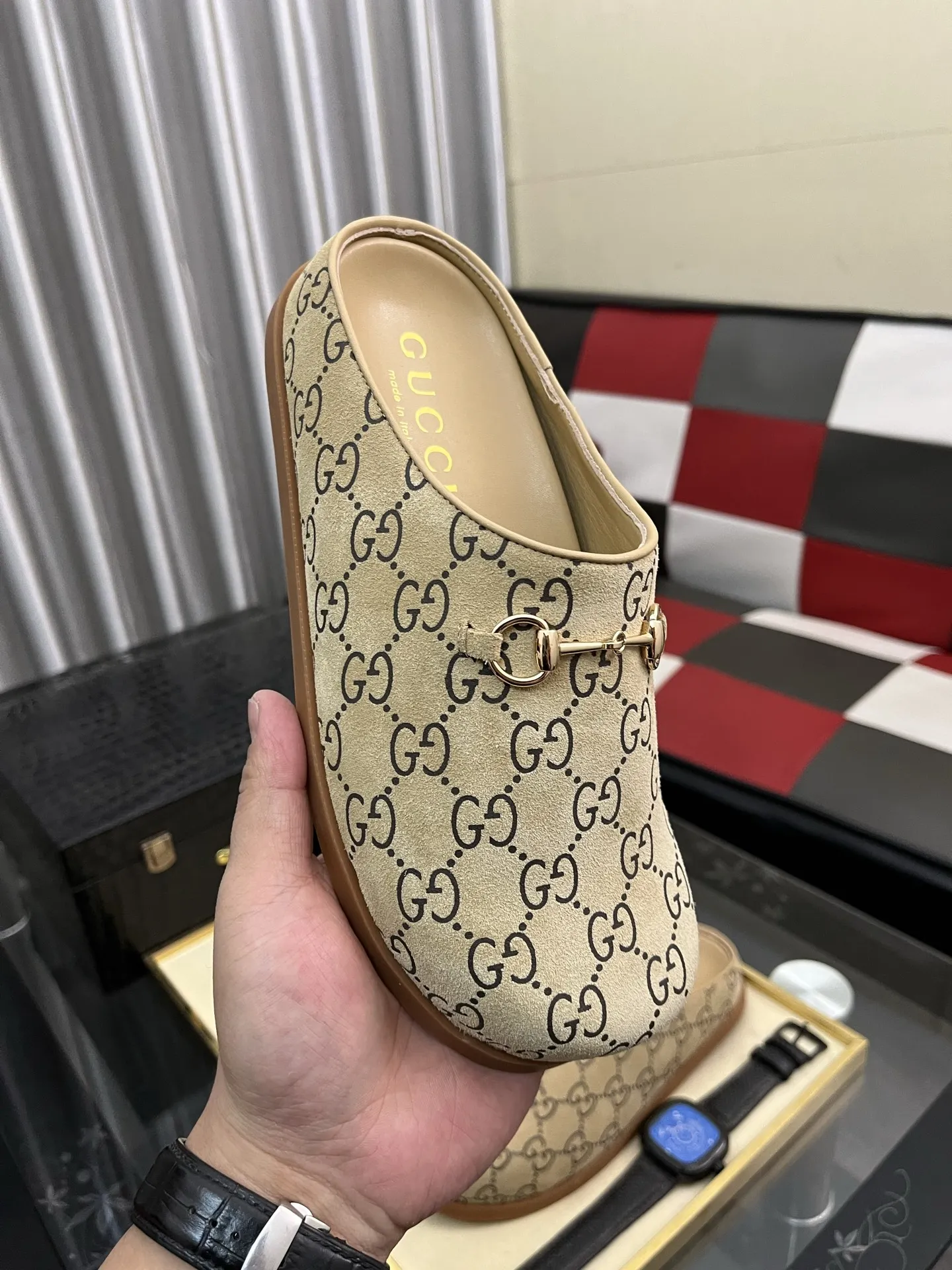 Wholeale cheap replica Gucci Slippers For Men #1416710 prices $85.00 USD online, outlet Gender MenSize US 4=EUR(38), US 5=EUR(39), US 6=EUR(40), US 7=EUR(41), US 8=EUR(42), US 9=EUR(43), US 10=EUR(44)! Wholesale new arrivals cheap fake Gucci Slippers enjoy free shipping and 66%-OFF with best quality! The hot on sale style Gucci Slippers For Men #1416710.
