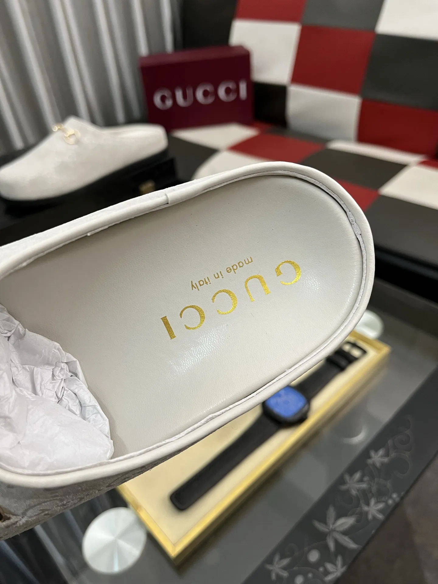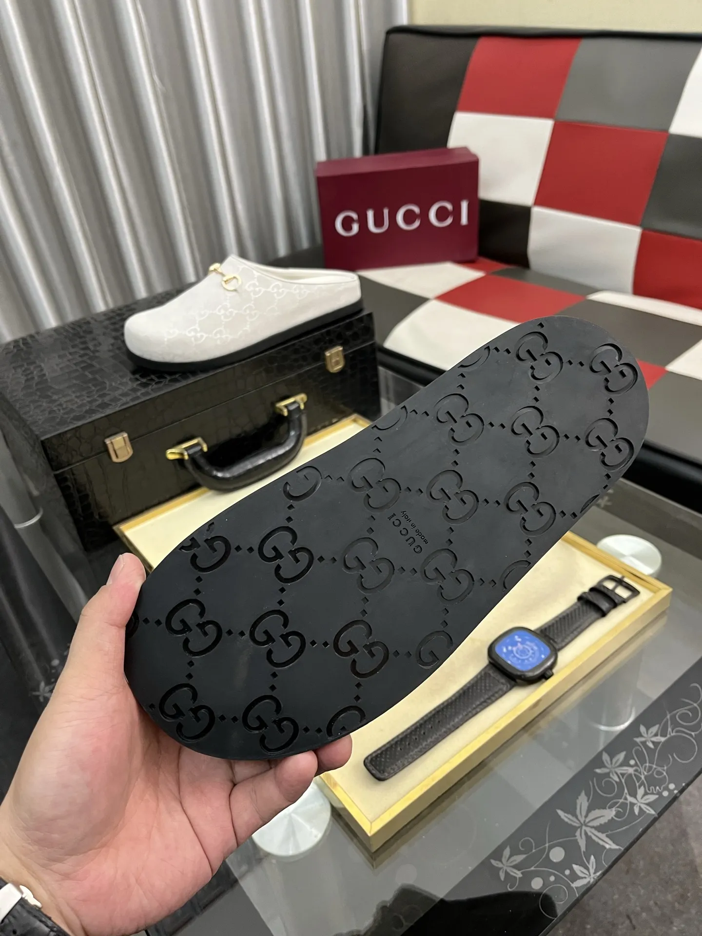 Wholeale cheap replica Gucci Slippers For Men #1416712 prices $85.00 USD online, outlet Gender MenSize US 4=EUR(38), US 5=EUR(39), US 6=EUR(40), US 7=EUR(41), US 8=EUR(42), US 9=EUR(43), US 10=EUR(44)! Wholesale new arrivals cheap fake Gucci Slippers enjoy free shipping and 66%-OFF with best quality! The hot on sale style Gucci Slippers For Men #1416712.