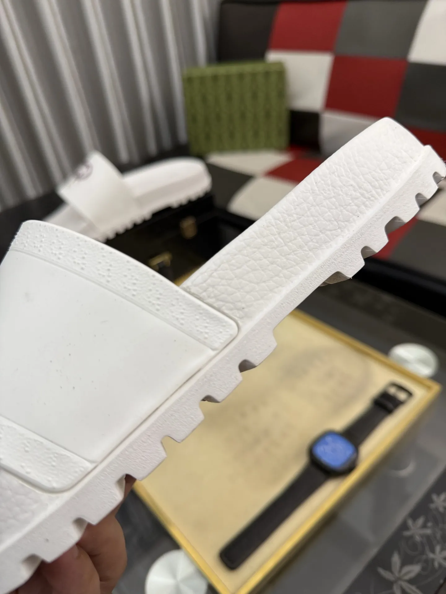 Wholeale cheap replica Gucci Slippers For Men #1434958 prices $48.00 USD online, outlet Gender MenSize US 4=EUR(38), US 5=EUR(39), US 6=EUR(40), US 7=EUR(41), US 8=EUR(42), US 9=EUR(43), US 10=EUR(44)! Wholesale new arrivals cheap fake Gucci Slippers enjoy free shipping and 66%-OFF with best quality! The hot on sale style Gucci Slippers For Men #1434958.