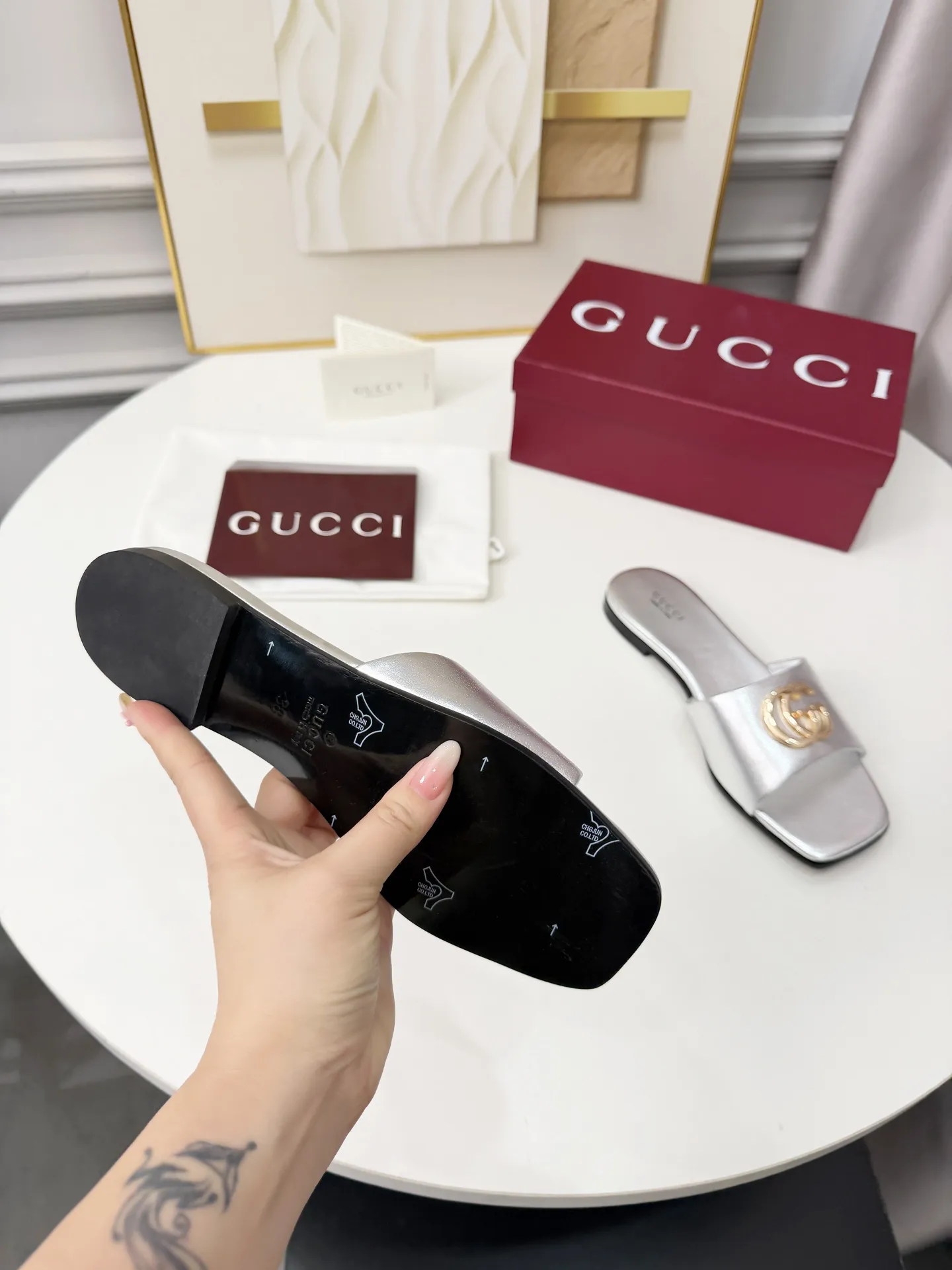 Wholeale cheap replica Gucci Slippers For Women #1417803 prices $82.00 USD online, outlet Gender WomenSize US 5=EUR(35), US 5.5=EUR(36), US 6=EUR(37), US 7=EUR(38), US 8=EUR(39), US 8.5=EUR(40), US 9.5=EUR(41), US 10=EUR(42)! Wholesale new arrivals cheap fake Gucci Slippers enjoy free shipping and 66%-OFF with best quality! The hot on sale style Gucci Slippers For Women #1417803.