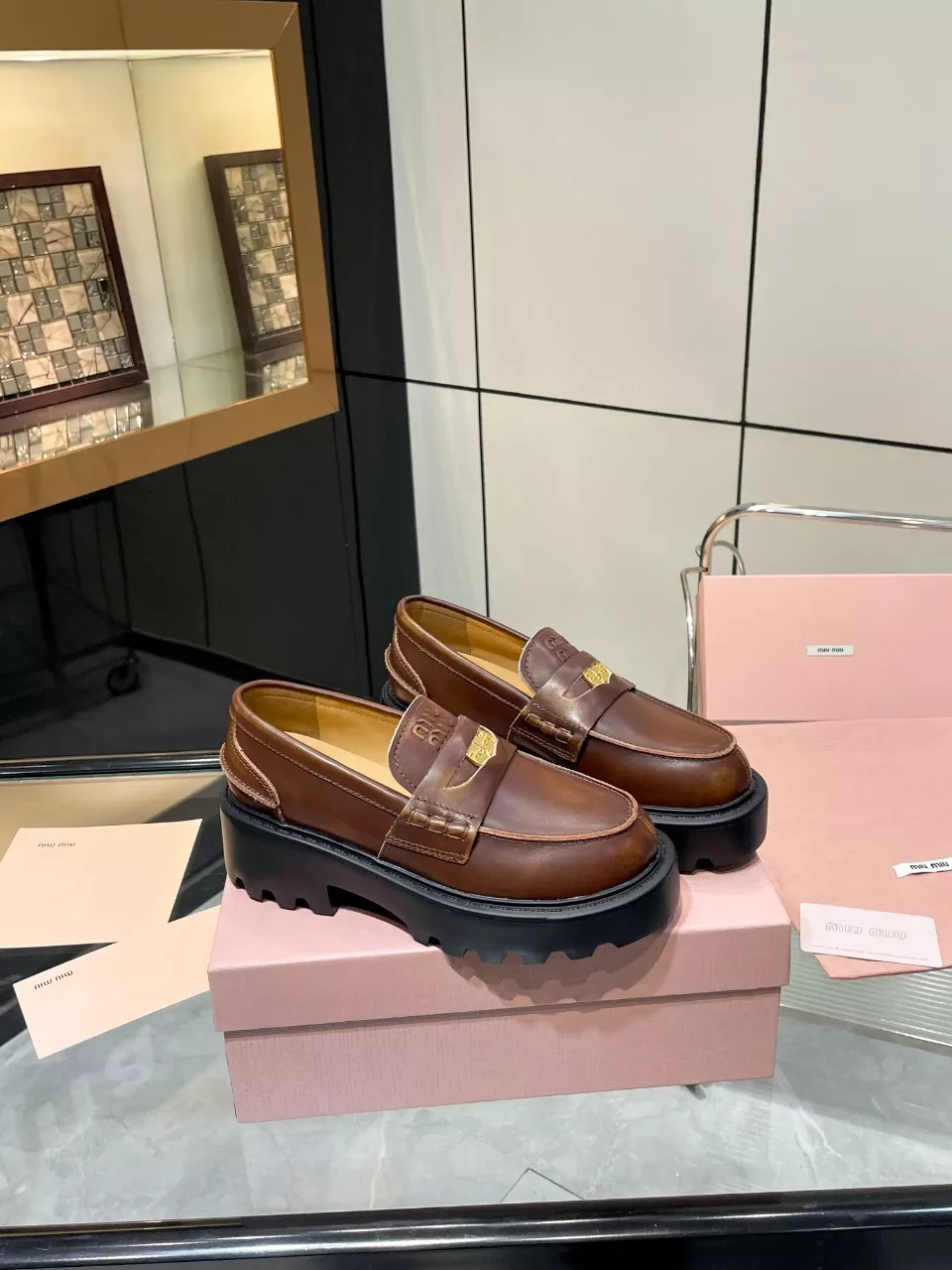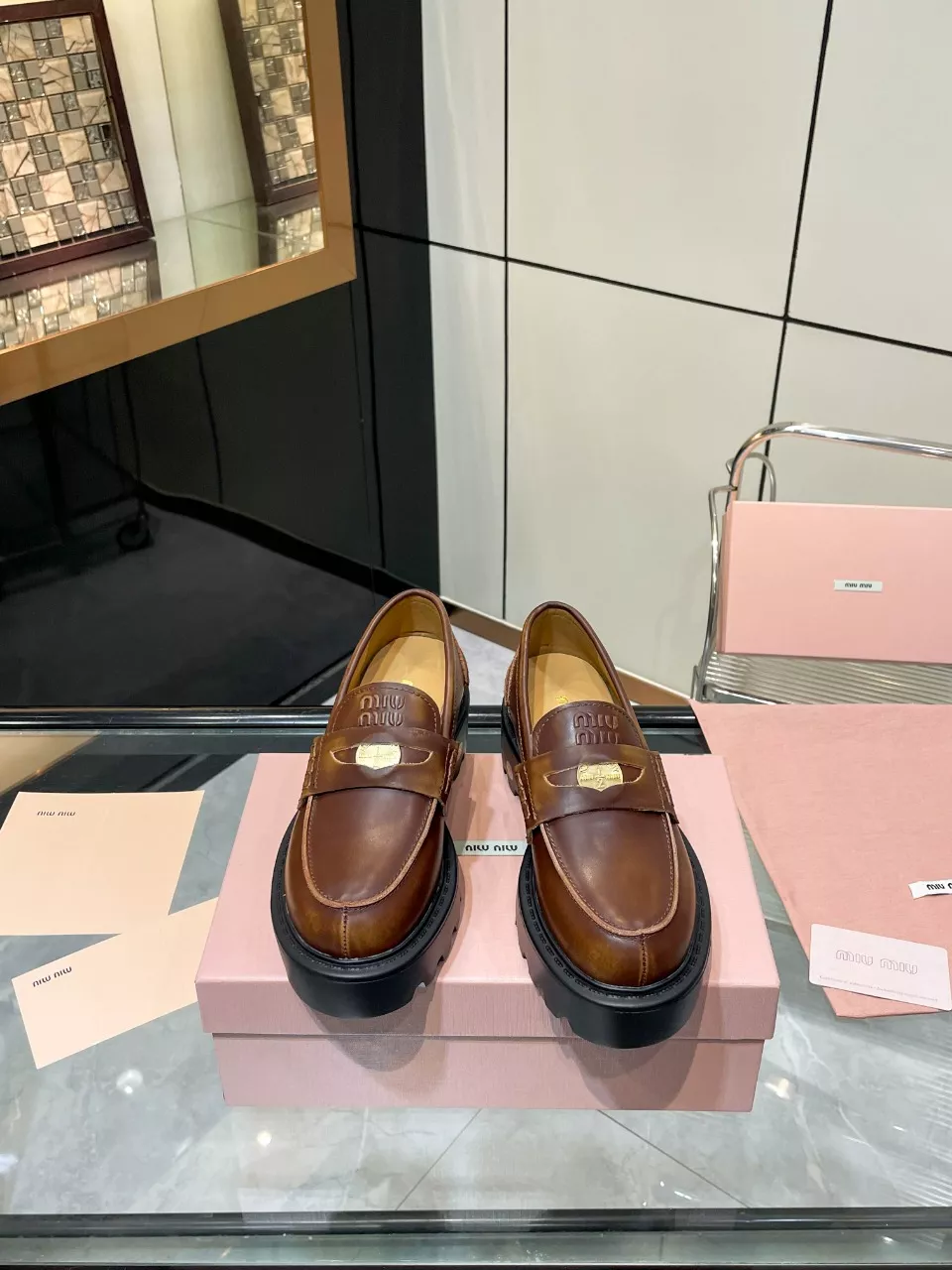 The best wholesale store offer cheap replica MIU MIU Leather Shoes items Gender WomenSize US 5=EUR(35), US 5.5=EUR(36), US 6=EUR(37), US 7=EUR(38), US 8=EUR(39) online!!