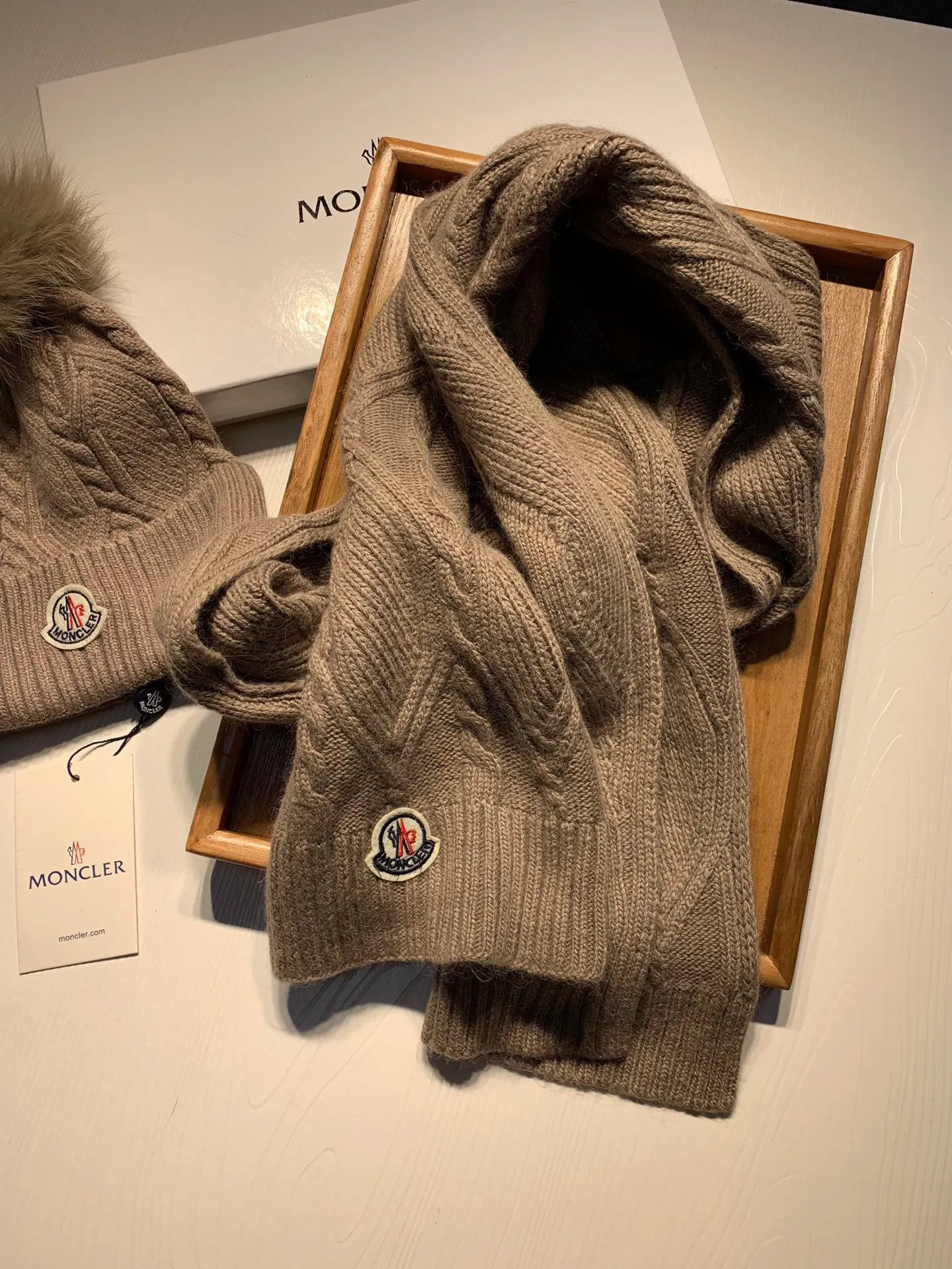 Wholeale cheap replica Moncler Hat and Scarf Set #1407406 prices $60.00 USD online, outlet ! Wholesale new arrivals cheap fake Moncler Hat and Scarf and Glove Set enjoy free shipping and 66%-OFF with best quality! The hot on sale style Moncler Hat and Scarf Set #1407406.