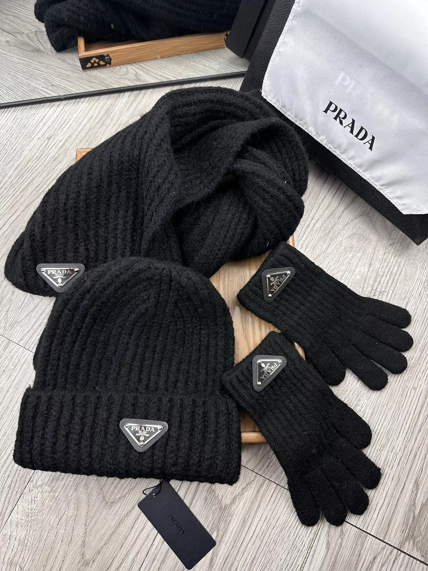 The best wholesale store offer cheap replica Prada Hat and Scarf and Glove Set items online!!