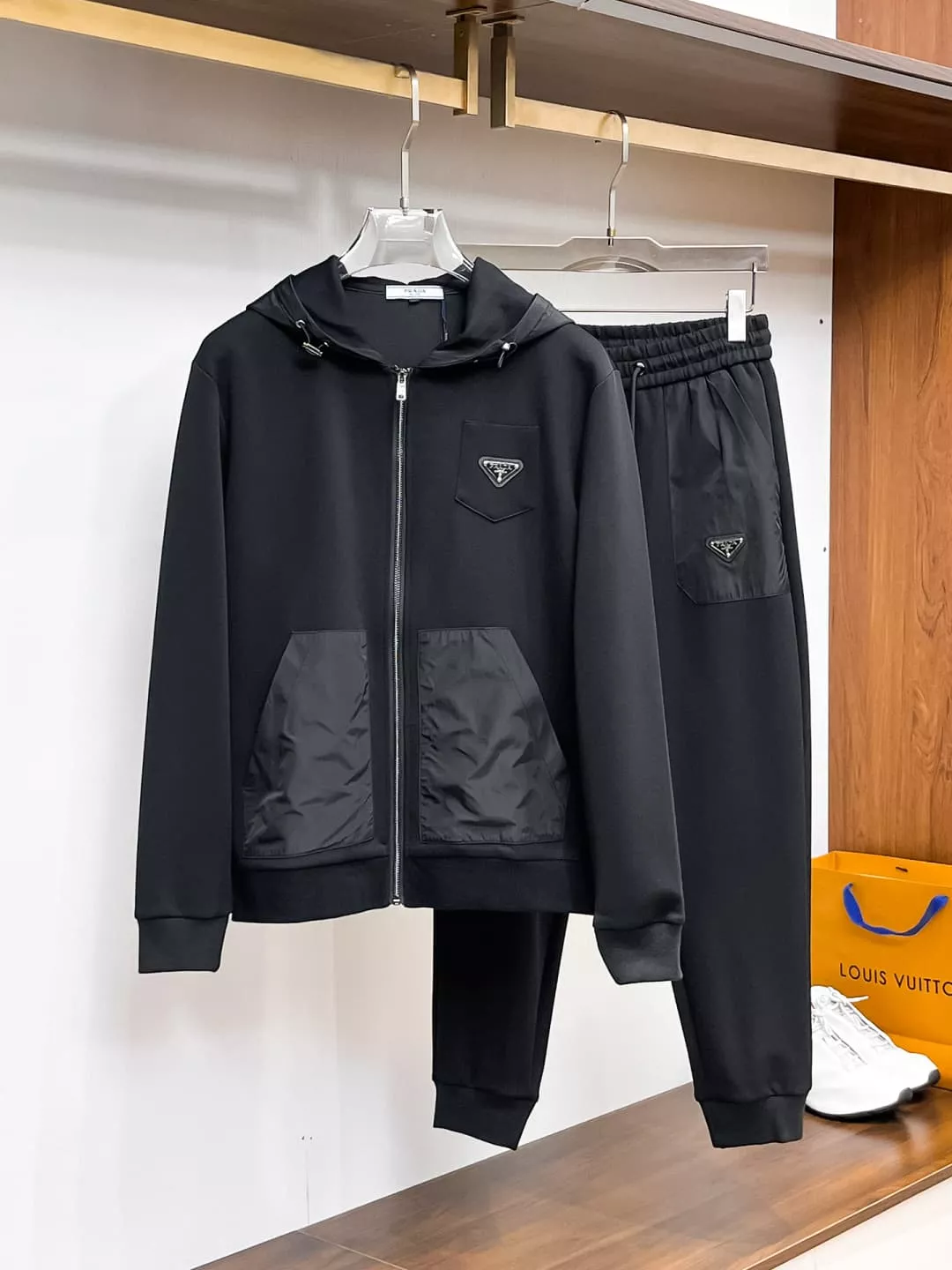Wholeale cheap replica Prada Tracksuits Long Sleeved For Men #1380395 prices $108.00 USD online, outlet Sleeved Long SleevedGender MenSize M, L, XL, XXL, 3XL! Wholesale new arrivals cheap fake Prada Tracksuits enjoy free shipping and 66%-OFF with best quality! The hot on sale style Prada Tracksuits Long Sleeved For Men #1380395.