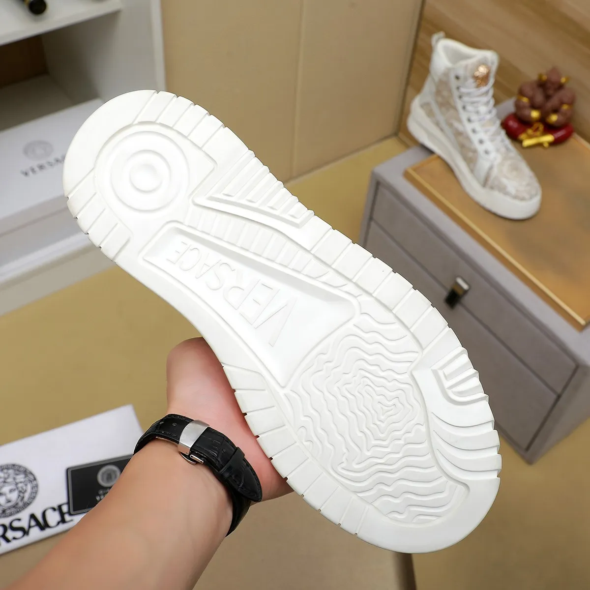 The best wholesale store offer cheap replica Versace High Tops Shoes items Gender MenSize US 4=EUR(38), US 5=EUR(39), US 6=EUR(40), US 7=EUR(41), US 8=EUR(42), US 9=EUR(43), US 10=EUR(44) online!!