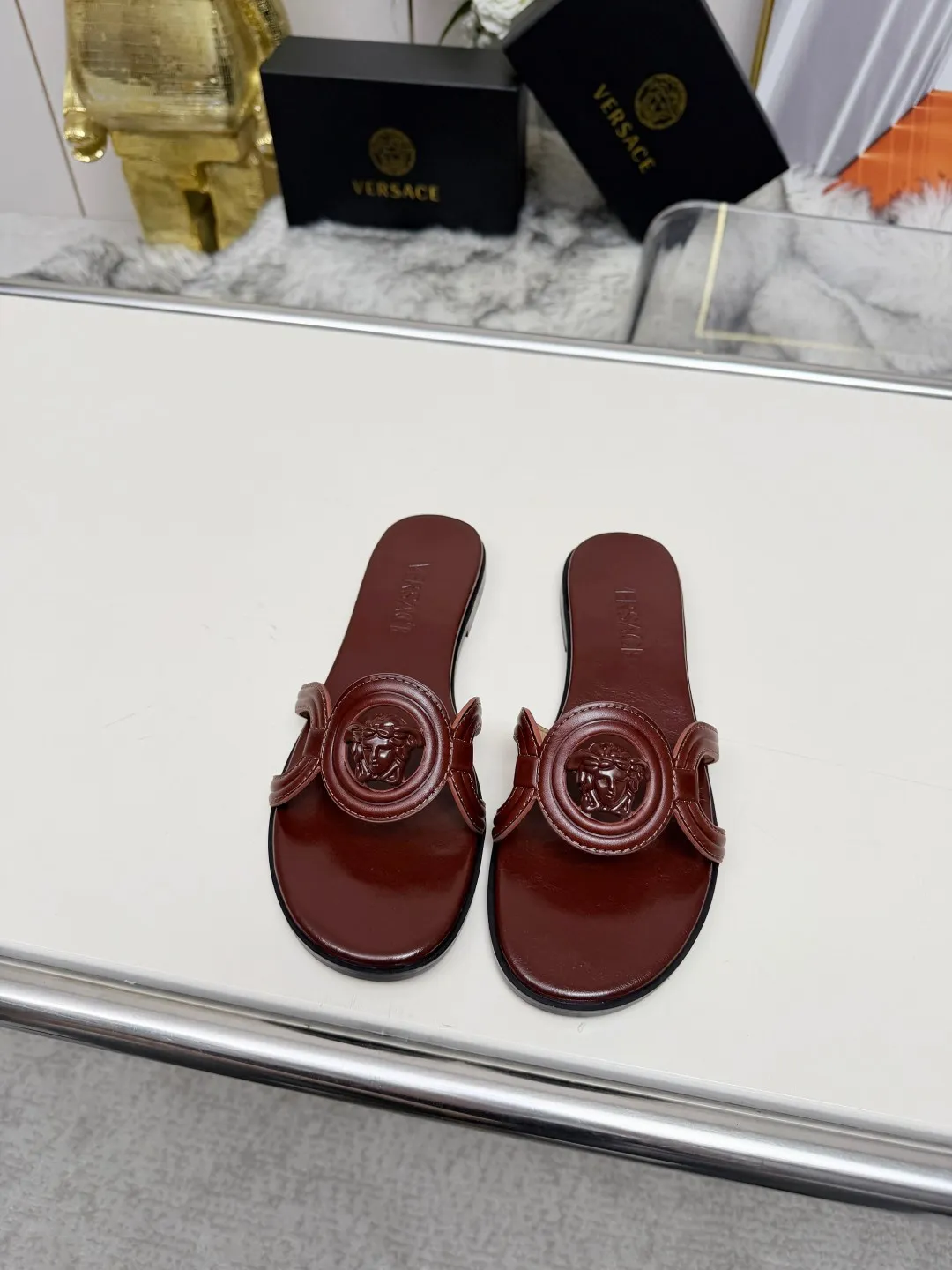 The best wholesale store offer cheap replica Versace Slippers items Gender WomenSize US 5=EUR(35), US 5.5=EUR(36), US 6=EUR(37), US 7=EUR(38), US 8=EUR(39), US 8.5=EUR(40) online!!
